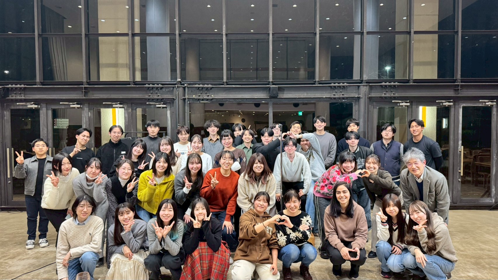 毎年恒例の研究室忘年会を行いました。OBの伊藤さん(2025年3月卒)と新4年生も参加し、賑やかな忘年会となりました。残り3ヶ月は卒論、修論、博論ともに忙しい時期ですが、明るく元気に乗り切っていきたいと思います。(文責:粉川)