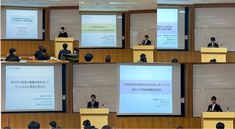 2月13日に生物資源学類、環境工学コースの卒業論文発表会が行われました。同研究室から5名が発表を行いました。 発表後には活発な質疑応答が行われ、発表者にとって大きな学びの機会となりました 。北村先生、粉川先生ならびに研究室の皆様に深く感謝申し上げます。(文責:吉永)