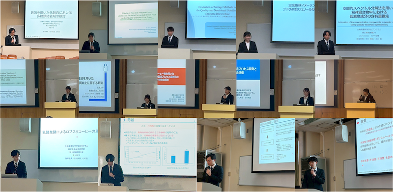 2月9日に環境工学領域、バイオシステム学領域の修士論文発表会が行われました。今年は14人が発表を行いました。他研究室の方々とディスカッションができ、とても有意義な時間となりました。 発表された方々お疲れ様でした。北村先生、粉川先生、研究員のBuiさん、そして研究室の皆様には大変お世話になりました。ありがとうございました。 (文責:田所)
